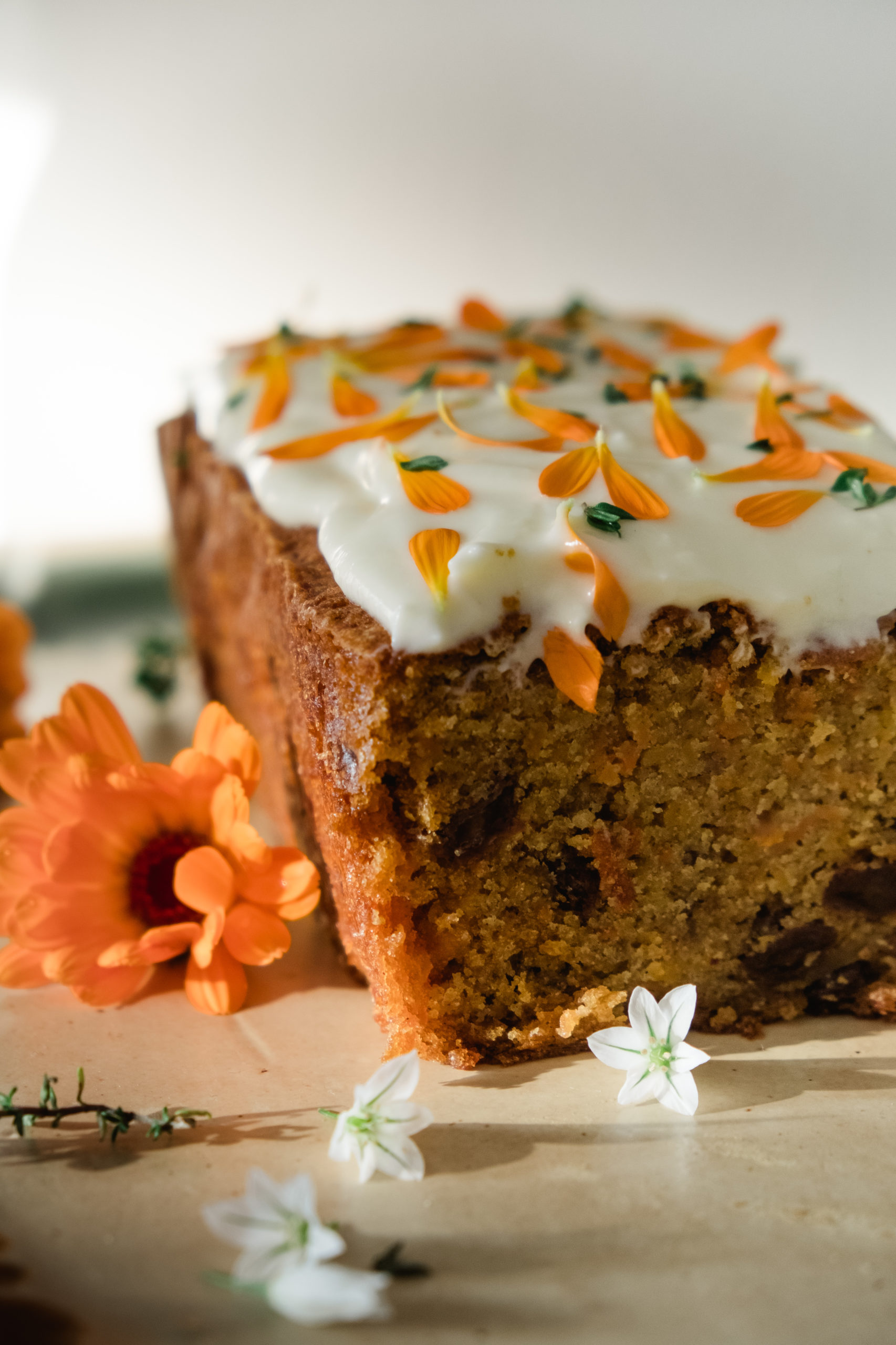 I added edible calendula petals and thyme from our garden to the frosting, for a little colour pop. These were taken in the beautiful evening light.